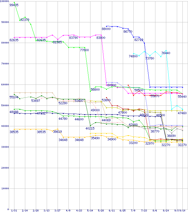 | [↓次グラフ]: | CPU主要製品(最安値6万円以上)の最安値推移 |