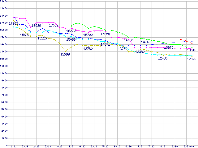 | [↑前グラフ]: | HDD 160~200GB未満の最安値推移 |