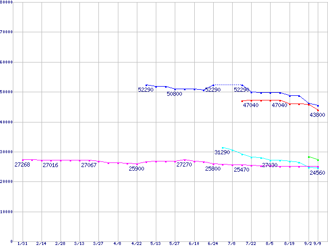 | [↑前グラフ]: | HDD 250~300GB未満の最安値推移 |