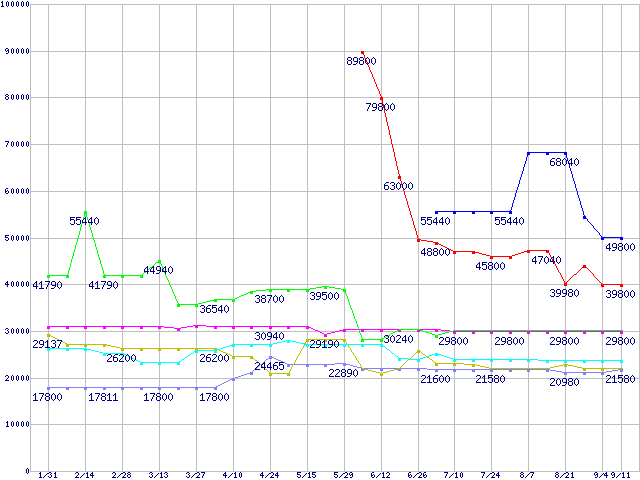 | [↑前グラフ]: | メモリ主要製品の最安値推移 |