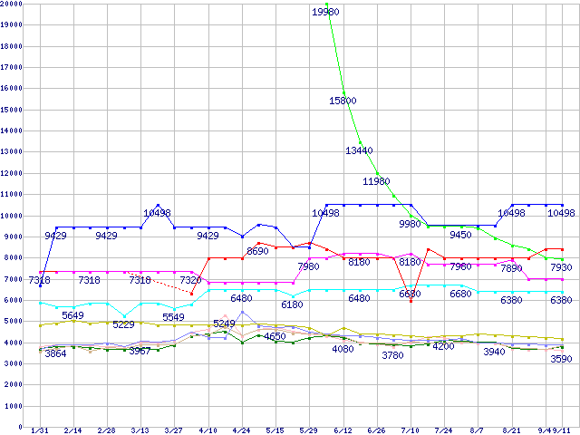 256MBモジュールの最安値推移