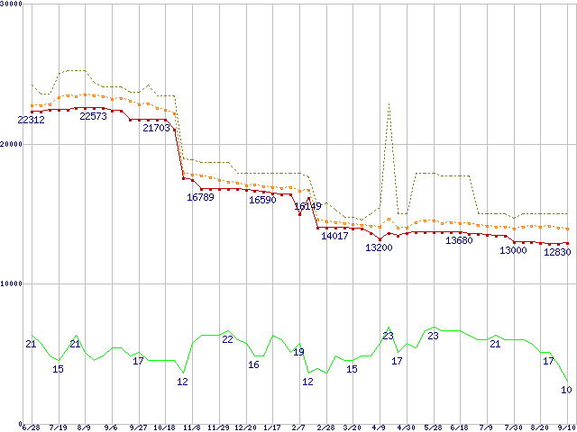 | Athlon XP 2800+ (2.08GHz) リテールパッケージの価格推移 |