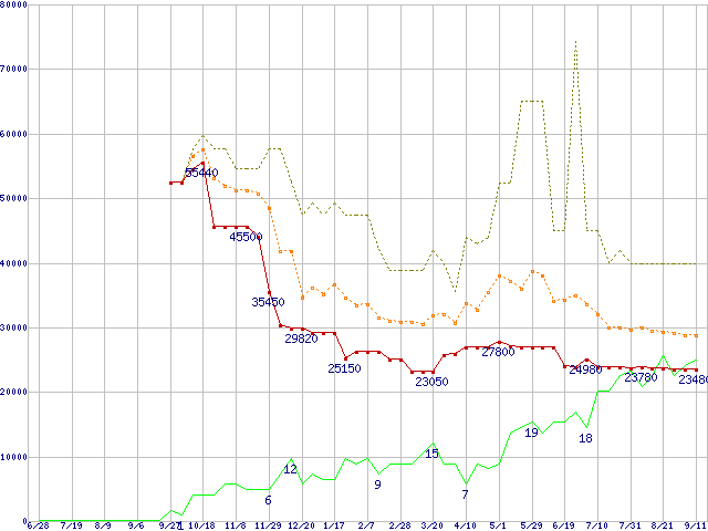 PC3200(DDR400) DDR SDRAM DIMMの最安値推移