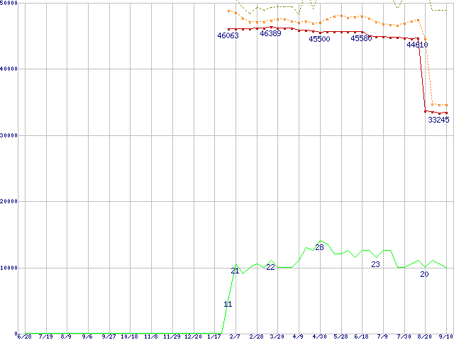Socket 478 (FC-PGA2,FSB 800MHz,L2 512KB,Hyper-Threading,Northwood)の最安値推移