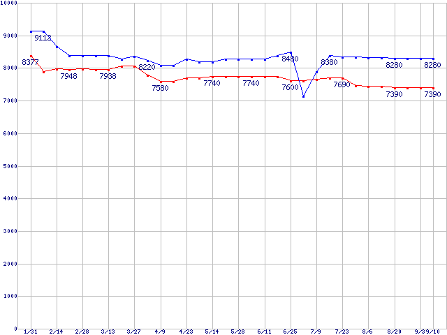 | [↑前グラフ]: | Socket A (OPGA,FSB 333MHz,L2 256KB,Thoroughbred)の最安値推移 |