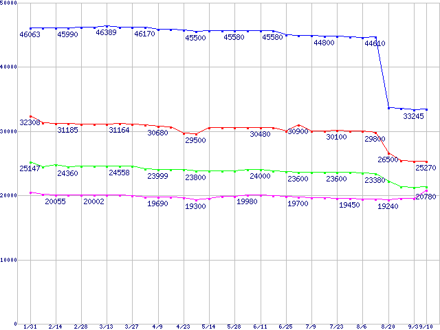 | [↑前グラフ]: | Socket 478 (FC-PGA2,FSB 800MHz,L2 1MB,Hyper-Threading,Prescott)の最安値推移 |