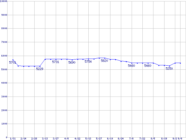 | [↑前グラフ]: | DiamondMax 16 (5400rpm,UltraATA/133,2MB,80GB/Platter,FDB)の最安値推移 |