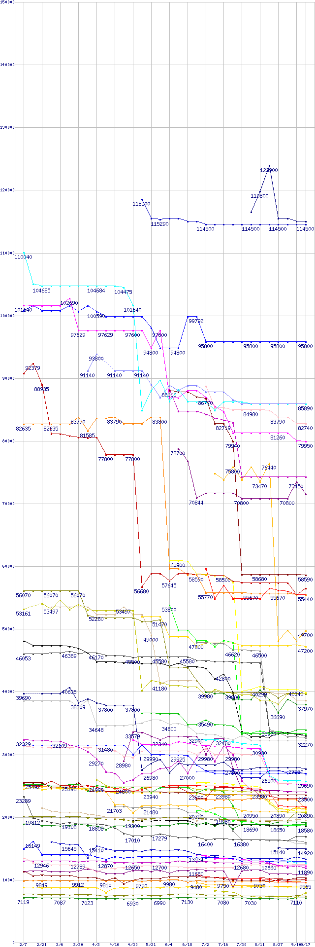 ※製品名をクリックすると個別のグラフを表示します ※点線部は販売店が確認できなかった、または調査データがないことを示します |