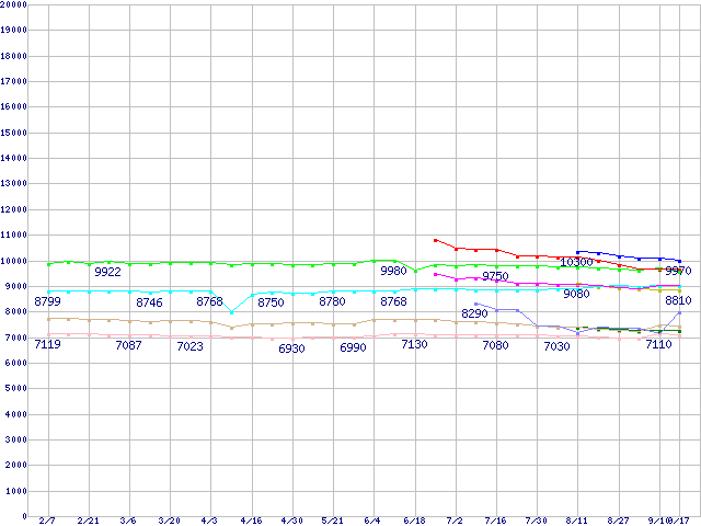 CPU主要製品(最安値1万円~2万円未満)の最安値推移