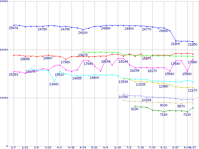 | ※製品名をクリックすると個別のグラフを表示します ※点線部は販売店が確認できなかった、または調査データがないことを示します | |
