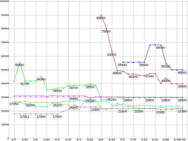 | ※製品名をクリックすると個別のグラフを表示します ※点線部は販売店が確認できなかった、または調査データがないことを示します | |
