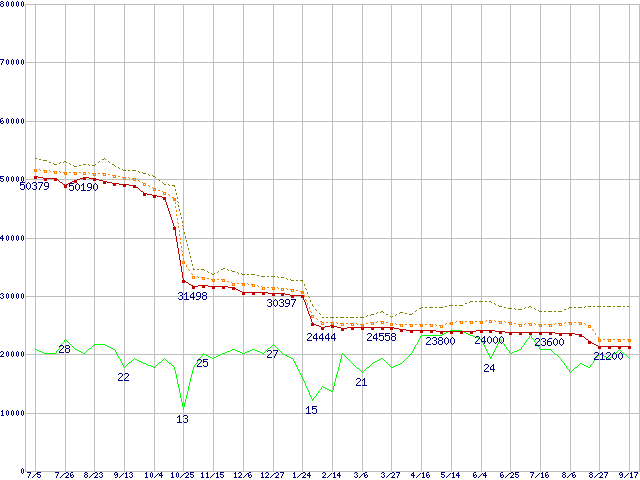 Socket 478 (FC-PGA2,FSB 800MHz,L2 512KB,Hyper-Threading,Northwood)の最安値推移