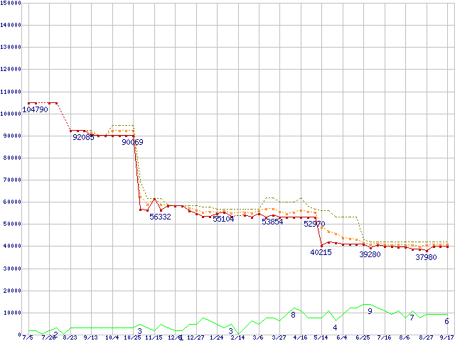 | Opteron 244(1.8GHz) リテールパッケージの価格推移 |