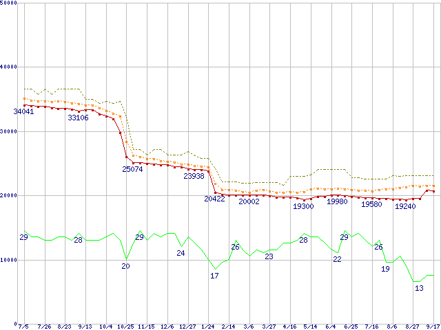 Socket 478 (FC-PGA2,FSB 800MHz,L2 512KB,Hyper-Threading,Northwood)の最安値推移