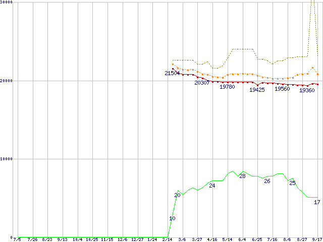 Socket 478 (FC-PGA2,FSB 800MHz,L2 1MB,Hyper-Threading,Prescott)の最安値推移