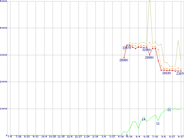 | Athlon 64 3200+(2.2GHz,L2 512KB) リテールパッケージの価格推移 |