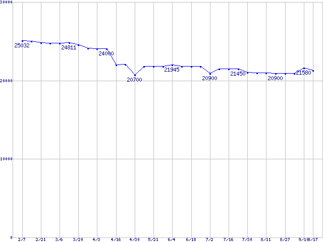 | Socket A (OPGA,FSB 400MHz,L2 512KB,Barton)の最安値推移 |