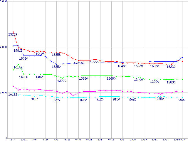| ※製品名をクリックすると個別のグラフを表示します ※点線部は販売店が確認できなかった、または調査データがないことを示します | |