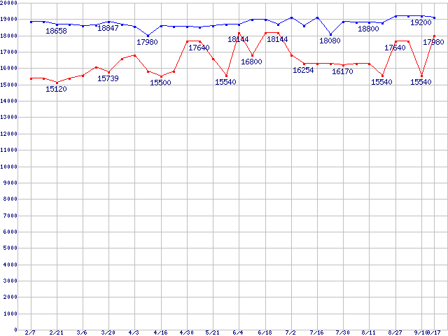 | [↑前グラフ]: | Socket 478 (FC-PGA2,FSB 533MHz,L2 1MB,Prescott)の最安値推移 |