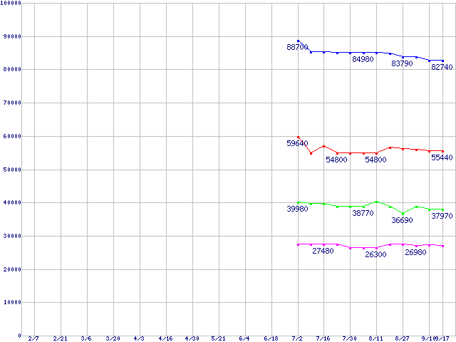 | [↑前グラフ]: | Socket 478 (micro-PGA,FSB 533MHz,L2 512KB,Northwood)の最安値推移 |
