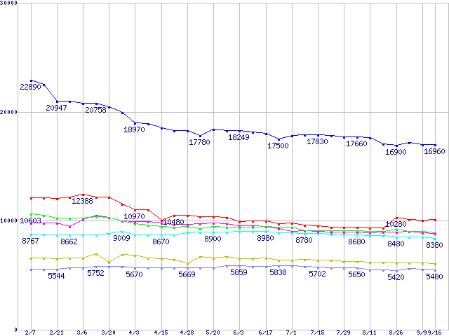 | [↑前グラフ]: | Deskstar 7K400 (7200rpm,UltraATA/100,FDB)の最安値推移 |