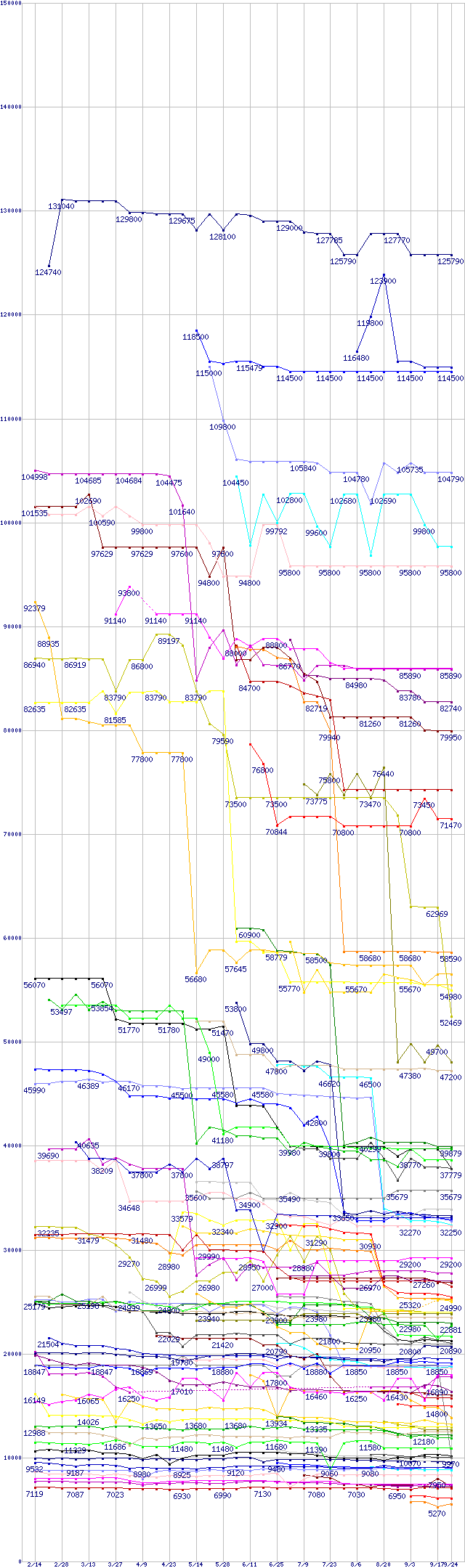 ※製品名をクリックすると個別のグラフを表示します ※点線部は販売店が確認できなかった、または調査データがないことを示します |