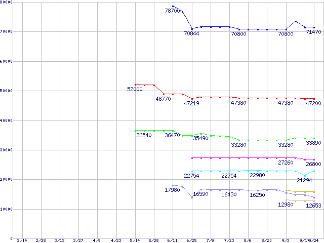 | ※製品名をクリックすると個別のグラフを表示します ※点線部は販売店が確認できなかった、または調査データがないことを示します | |