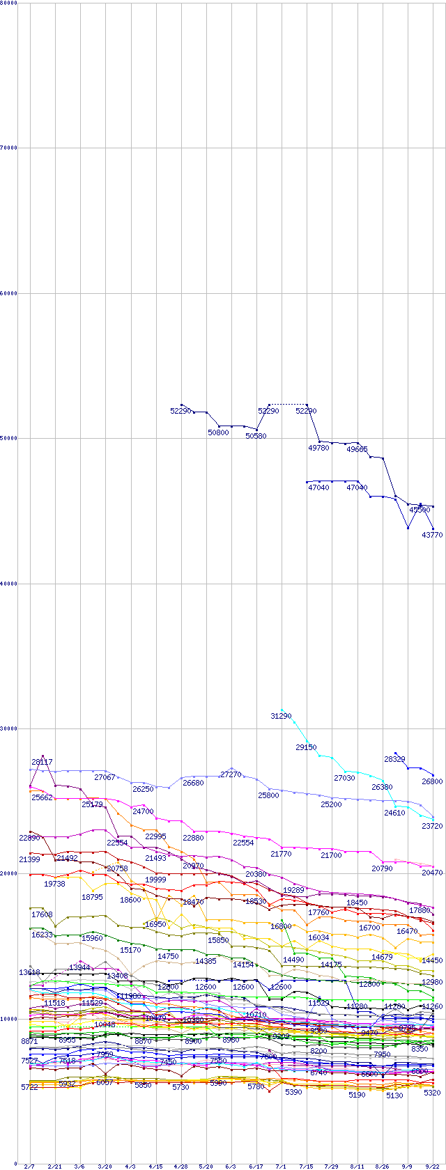 ※製品名をクリックすると個別のグラフを表示します ※点線部は販売店が確認できなかった、または調査データがないことを示します |