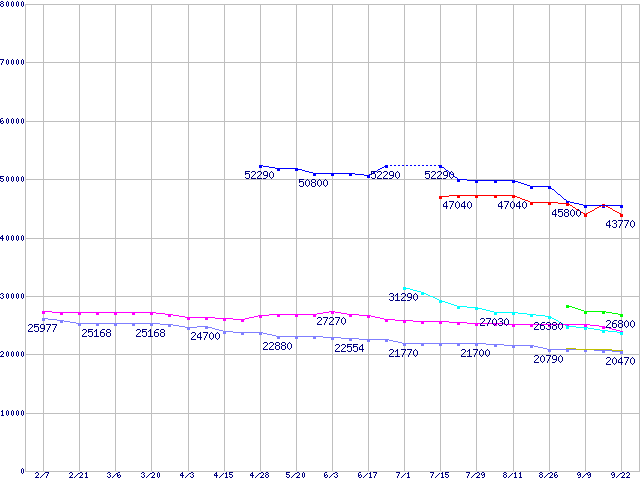 | [↑前グラフ]: | HDD主要製品(最安値1万5千円~2万円未満)の最安値推移 |