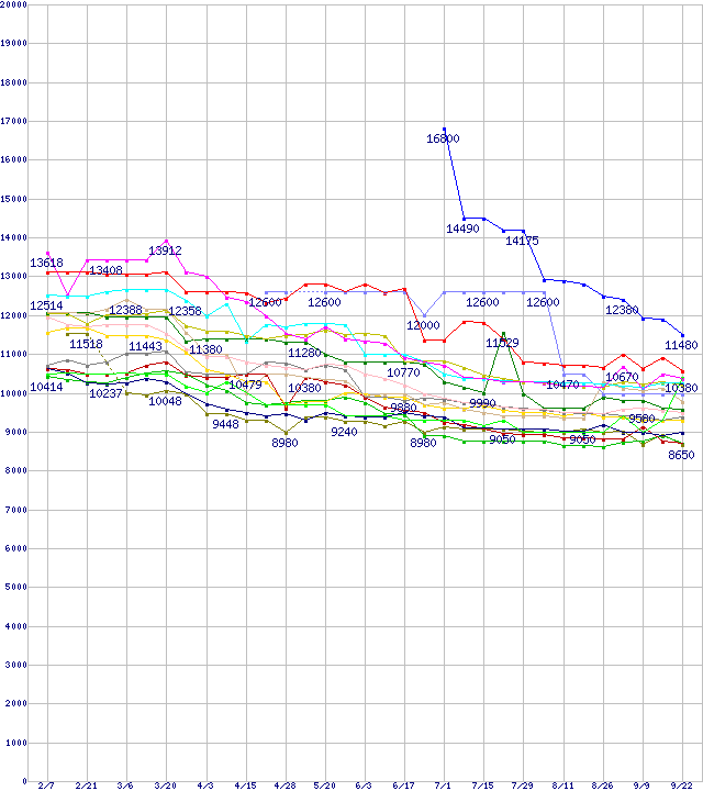 ※点線部は販売店が確認できなかった、または調査データがないことを示します