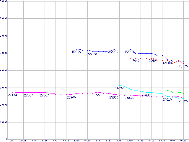 | ※製品名をクリックすると個別のグラフを表示します ※点線部は販売店が確認できなかった、または調査データがないことを示します | |