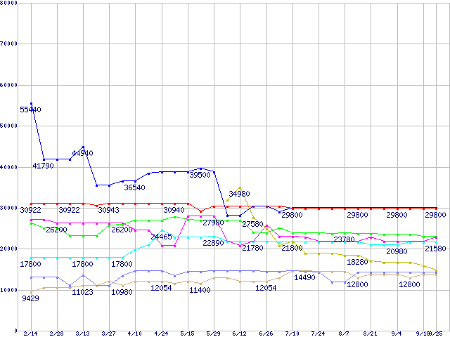 | ※製品名をクリックすると個別のグラフを表示します ※点線部は販売店が確認できなかった、または調査データがないことを示します | |