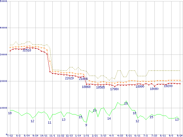 CPU主要製品(最安値1万円~2万円未満)の最安値推移