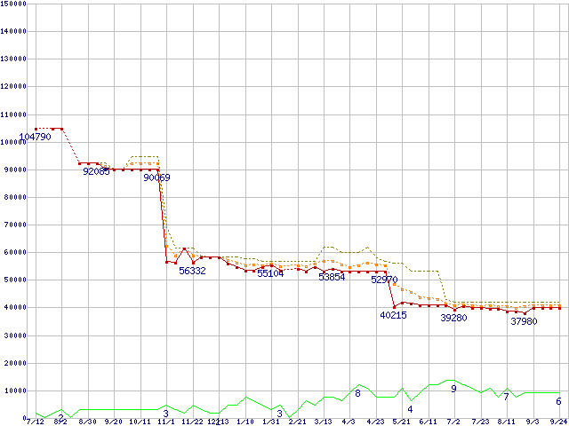 | Opteron 244(1.8GHz) リテールパッケージの価格推移 |