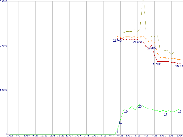 | Athlon 64 2800+(1.8GHz,L2 512KB) リテールパッケージの価格推移 |