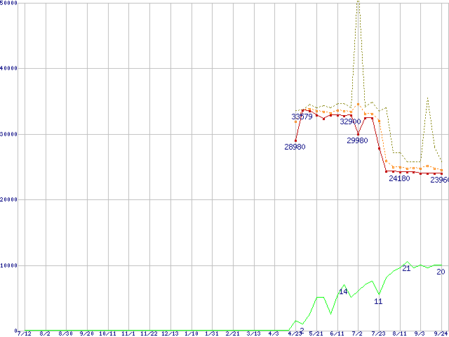 | Athlon 64 3200+(2.2GHz,L2 512KB) リテールパッケージの価格推移 |