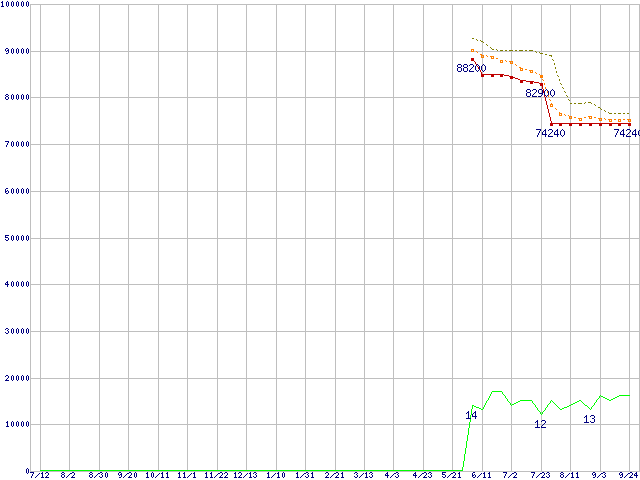 | Athlon 64 3800+(2.4GHz,L2 512KB) リテールパッケージの価格推移 |