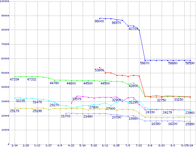 | [↑前グラフ]: | Socket 939 (PGA,FSB 1000MHz)の最安値推移 |
