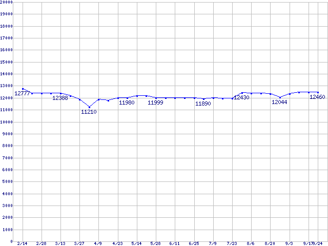 | Socket A (OPGA,FSB 333MHz,L2 256KB,Thoroughbred)の最安値推移 |