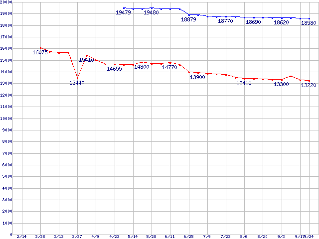| [↑前グラフ]: | Socket 478 (FC-PGA2,FSB 533MHz,L2 512KB,Hyper-Threading,Northwood)の最安値推移 |