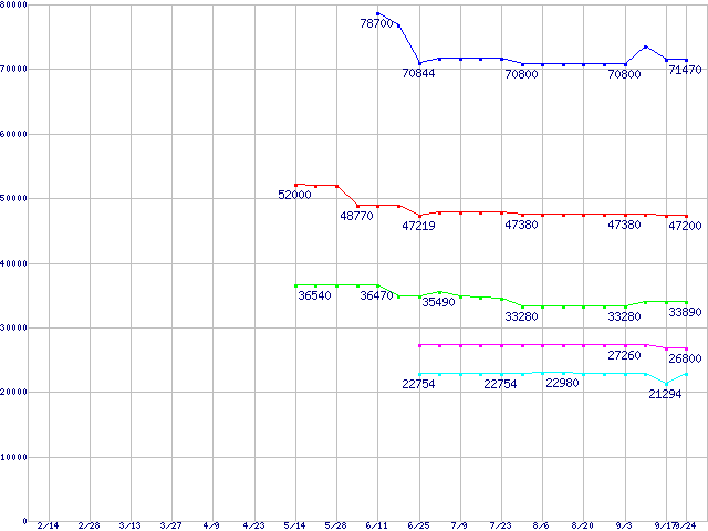 | ※製品名をクリックすると個別のグラフを表示します ※点線部は販売店が確認できなかった、または調査データがないことを示します | |