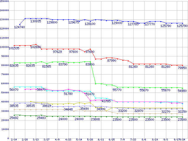 | [↑前グラフ]: | Socket 604 (FCBGA,FSB 800MHz,L2 1MB,Nocona)の最安値推移 |