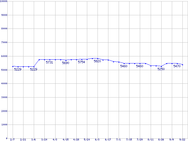 | [↑前グラフ]: | DiamondMax 16 (5400rpm,UltraATA/133,2MB,80GB/Platter,FDB)の最安値推移 |