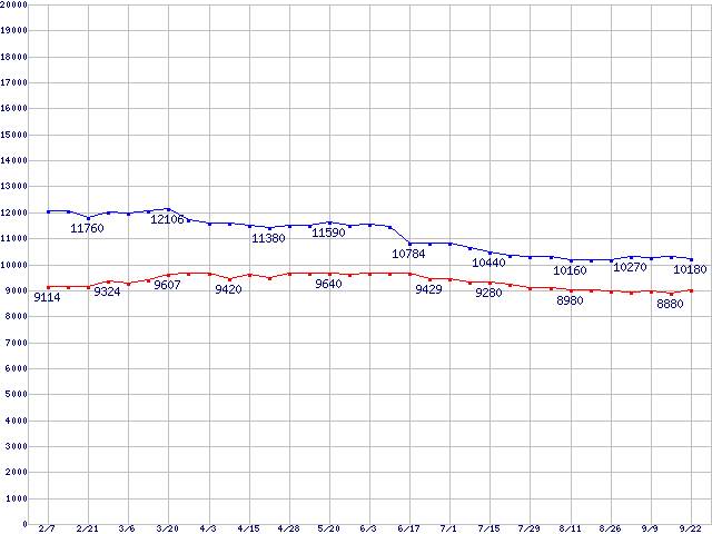 | [↑前グラフ]: | Barracuda 7200.7 Plus (7200rpm,UltraATA/100,8MB,100GB/Platter,FDB)の最安値推移 |
