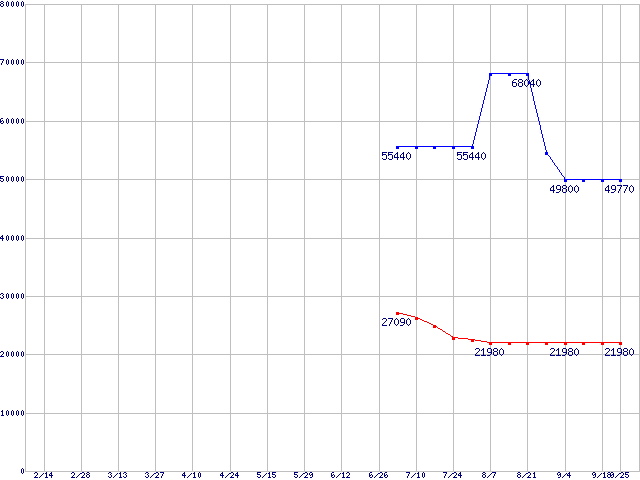 | ※製品名をクリックすると個別のグラフを表示します ※点線部は販売店が確認できなかった、または調査データがないことを示します |