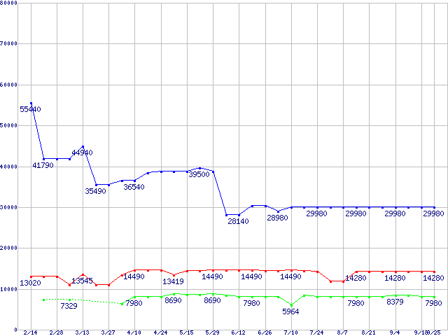 | ※製品名をクリックすると個別のグラフを表示します ※点線部は販売店が確認できなかった、または調査データがないことを示します | |