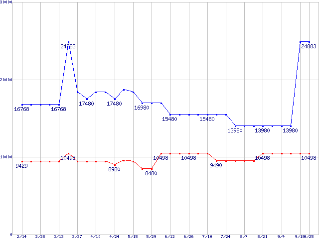 | [↑前グラフ]: | PC4000(DDR500) DDR SDRAM DIMMの最安値推移 |