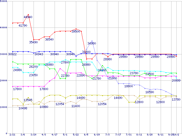 | ※製品名をクリックすると個別のグラフを表示します ※点線部は販売店が確認できなかった、または調査データがないことを示します | |