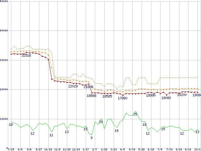 | ※このグラフは過去のデータも税率5%相当に調整した税込み相当額のグラフです。 税率変更や、総額表示方式導入(2004年4月)の影響は除いています。 | |||||||||||||||