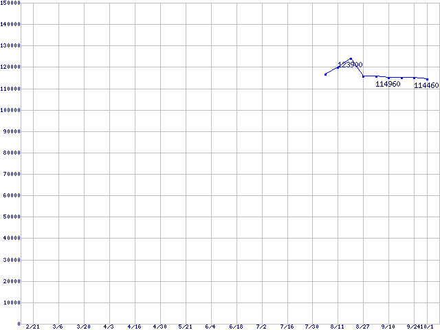 | LGA 775 (FC-LGA4,FSB 800MHz,L2 512KB,L3 2MB,Hyper-Threading,Gallatin)の最安値推移 |
